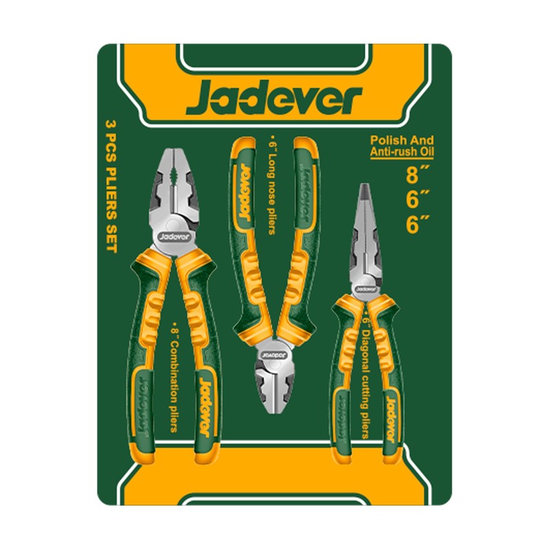 Jadever 3-Piece High Leverage Pliers Set, 8" High Leverage Combination Pliers & 6" High Leverage Side Cutting Pliers & 6" High Leverage Long Nose Pliers, 30% Labor Saving, Black Polished