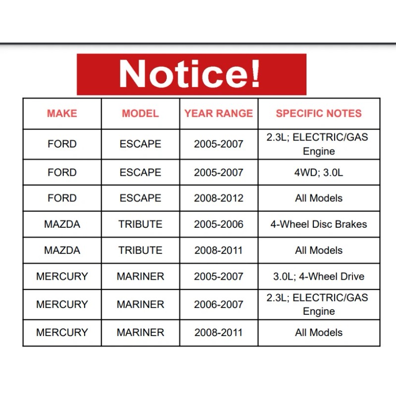 FORD | ESCAPE | 2005-2007 | 2.3L; ELECTRIC/GAS Engine 4WD; 3.0L |