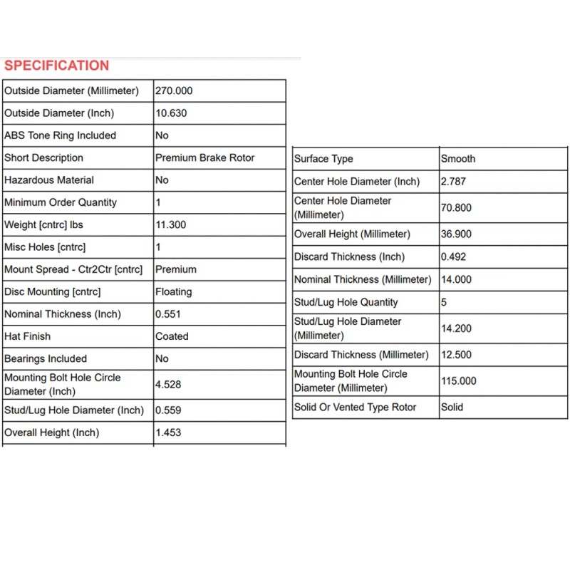 - Bolt/Hole Diameter or Stud Size: 14.2mm 0.559inch