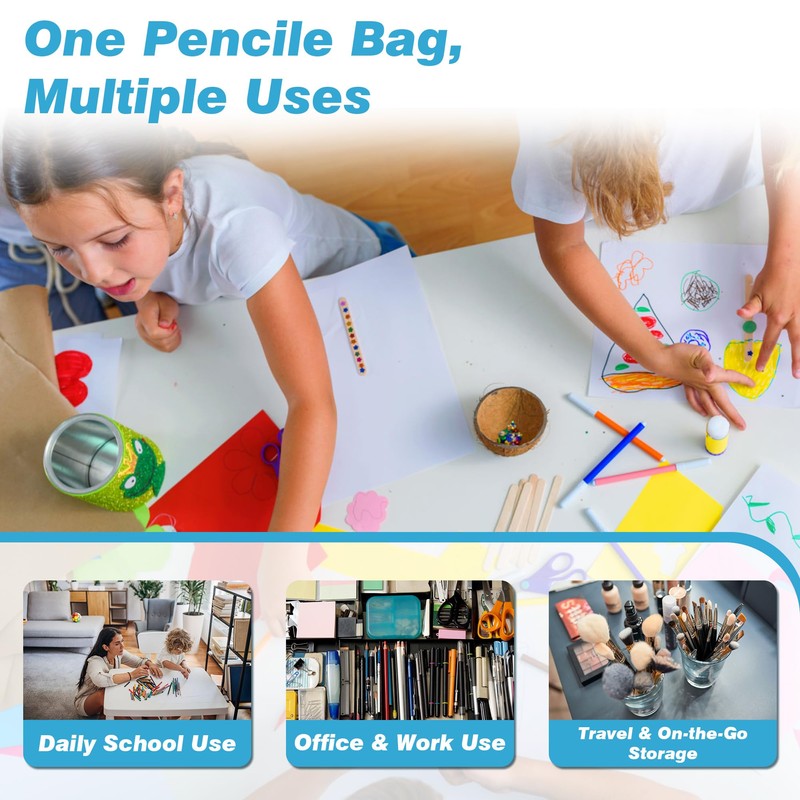 - 【Big Capacity with Triple-Zipper Compartments】 This large pencil case features three spacious zippered sections, giving you room for over 150 pens, markers, scissors, sticky notes, and more. Whether you’re a student or an artist, this big pencil pouch keeps your supplies organized and accessible