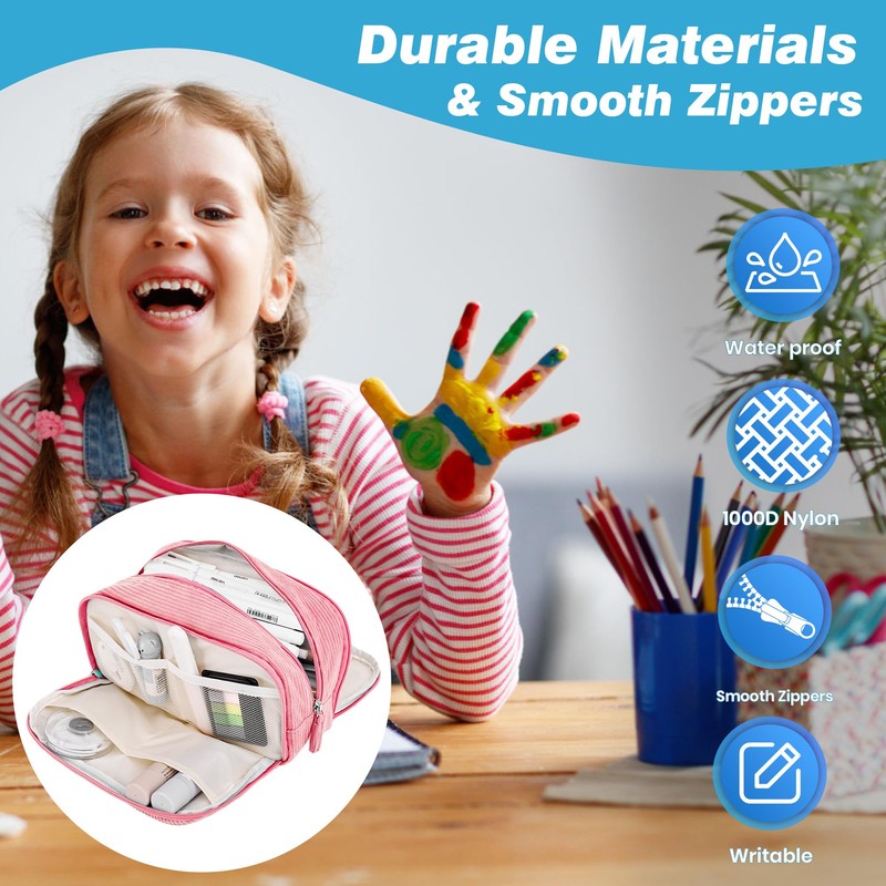- Soft Corduroy Fabric with Water-Resistant Finish】 Crafted from premium corduroy fabric, this aesthetic pencil case is soft, stylish, and built to last. Its water-resistant coating protects your items from spills, making it a perfect choice for school, office, or travel