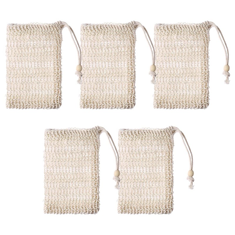 Jagowa 5PCS Soap Bag Natural Sisal Soap Bag Exfoliating Soap Holder for Foaming Drying Soaps