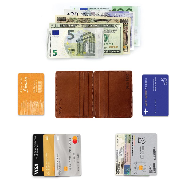- Engraving: This magical wallet can be personalised with your individual engraving. Just click on "Customise now" and enter the engraving preference. The preview of the configuration is an approximate preview and the end result may differ from the preset. The engraving is always right alignment, even if the preview does not always show the right alignment. Please note: -