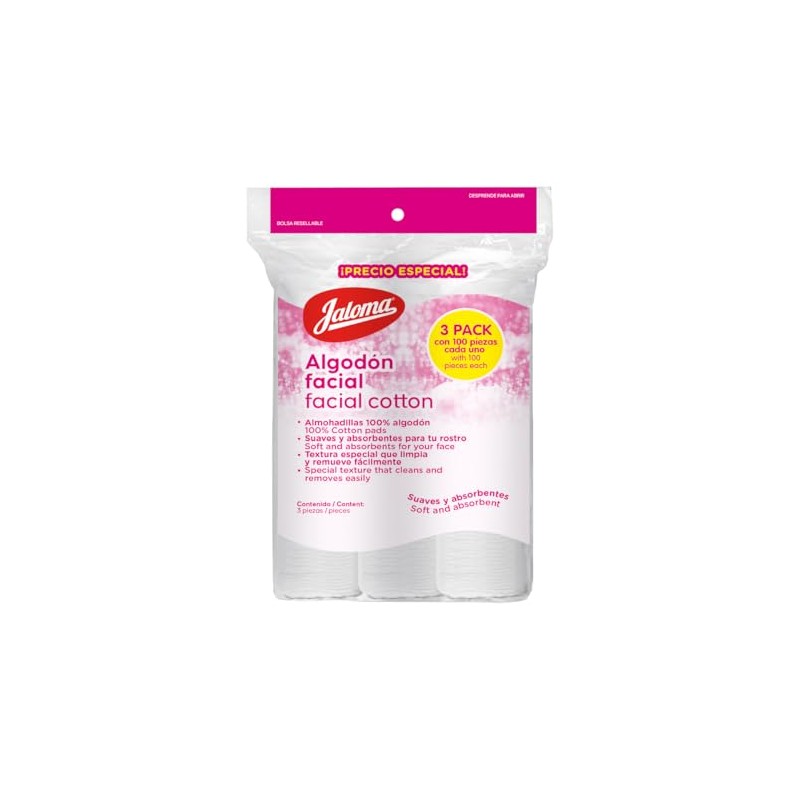 Jaloma - Jaloma | Tri-pack de Algodón Facial, 100% algodón, 3 packs de 100 piezas. ✅ Diseño innovador que supera las expectativas. Materiales de alta gama y acabados premium. ⏰ Oferta por tiempo limitado. Ideal para quienes buscan lo mejor en calidad y estilo. Producto auténtico con satisfacción total asegurada. ¡No te quedes sin el tuyo y aprovecha esta oportunidad única!