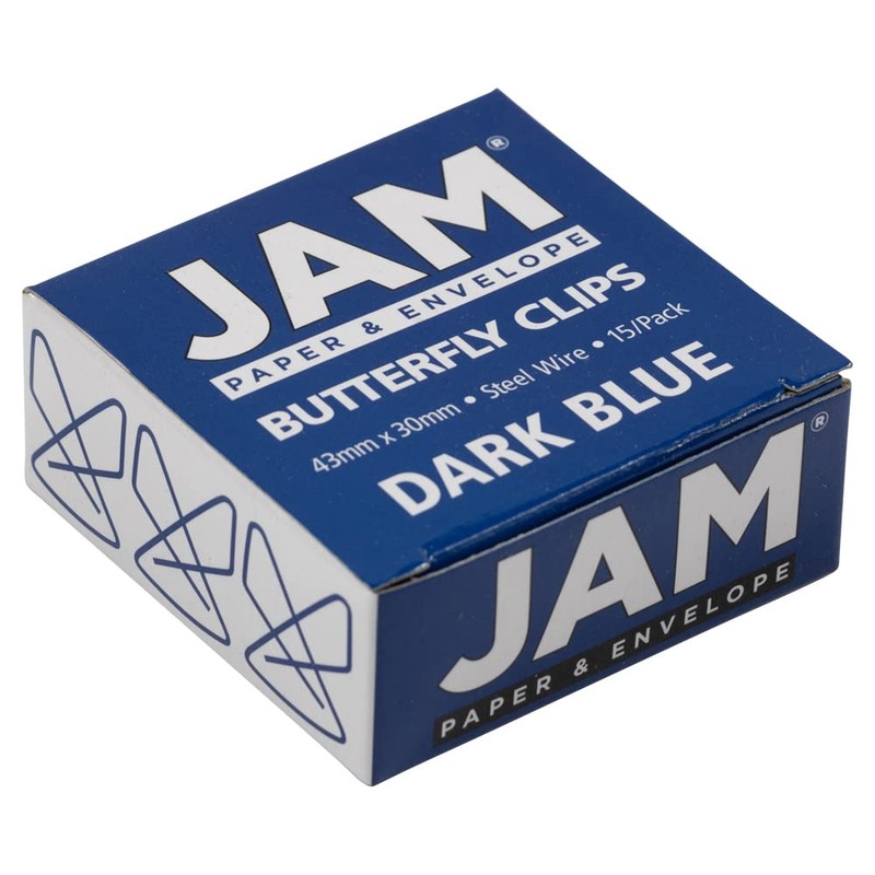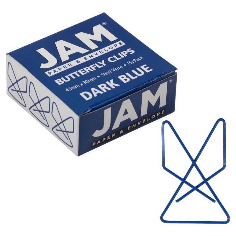 JAM PAPER Colorful Butterfly Clips - Dark Blue Paper Clamps - 15/Pack
