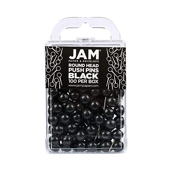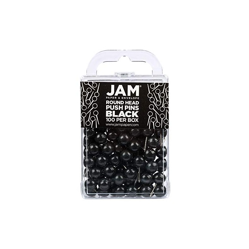 JAM PAPER Colorful Push Pins - Round Head Map Thumb Tacks - Black Pushpins - 100/Pack