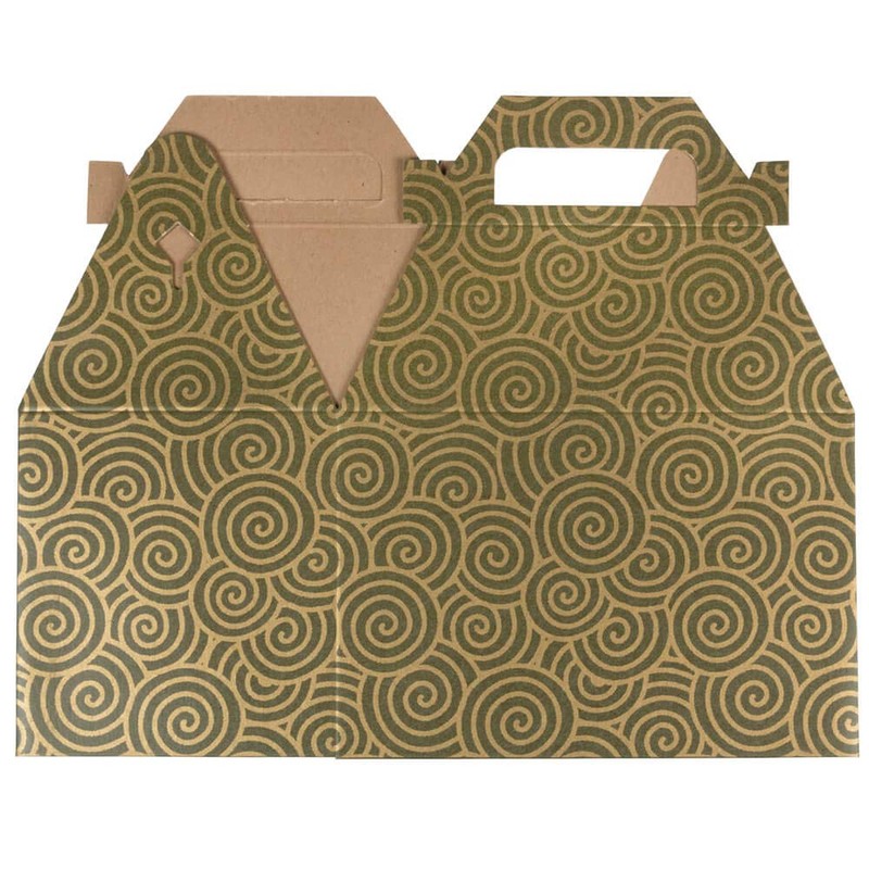 JAM Paper Gable Gift Box with Handle - Medium - 4 x 8 x 5 1/4 - Green & Gold Swirl - Sold individually