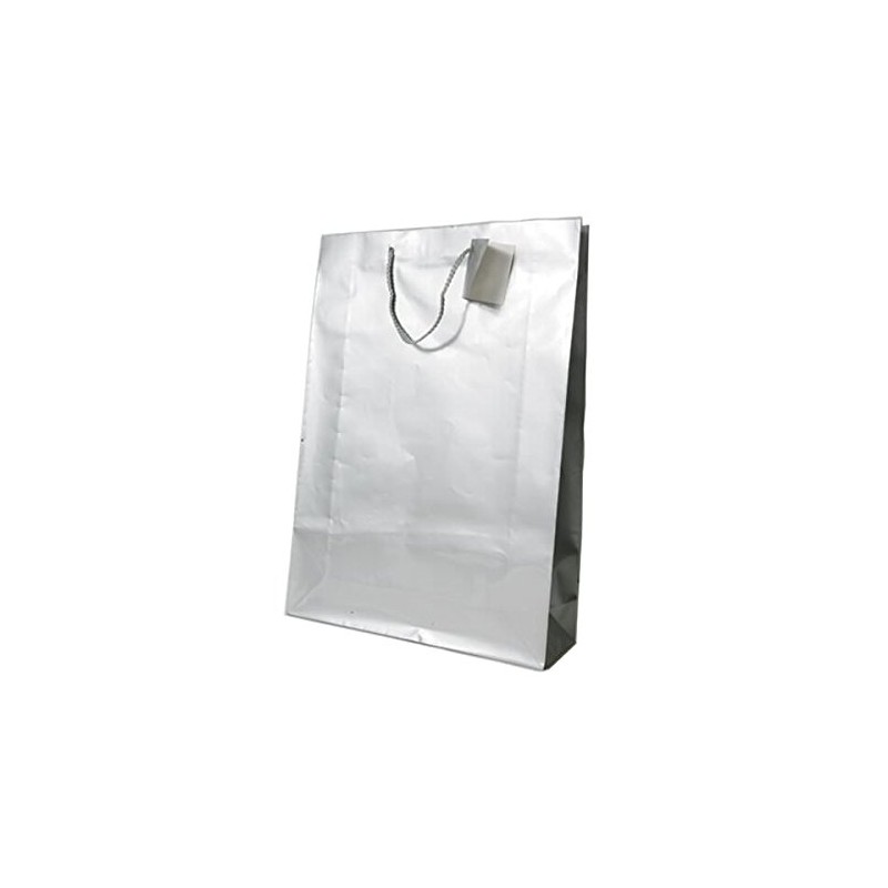 JAM PAPER Gift Bags with Rope Handles - X-Large - 12 1/2 x 17 x 6 - Silver Glossy - Sold Individually