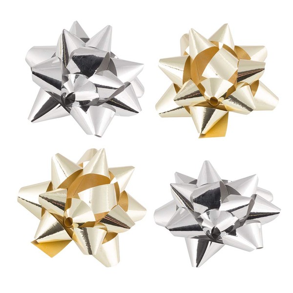 JAM Paper Gold and Silver Super Tiny Gift Bows are ideal for all of your good gifts that come in super tiny packages! Perfect for everything from stocking stuffers to engagement rings, these bows will give your tiny gifts that extra pop of bright shine! Each bow features a self adhesive sticker on the bottom for secure attachment and is made of looped, metallic plastic ribbon. Use a single bow for small gifts, or use multiple on larger gifts to create fun and eye-catching patterns! Don't let your gifts appear plain or boring. Give them an extra hint of shine with these elegant, tiny bows! Size: 1in. diameter | Color: Gold, Silver | Quantity: 9
