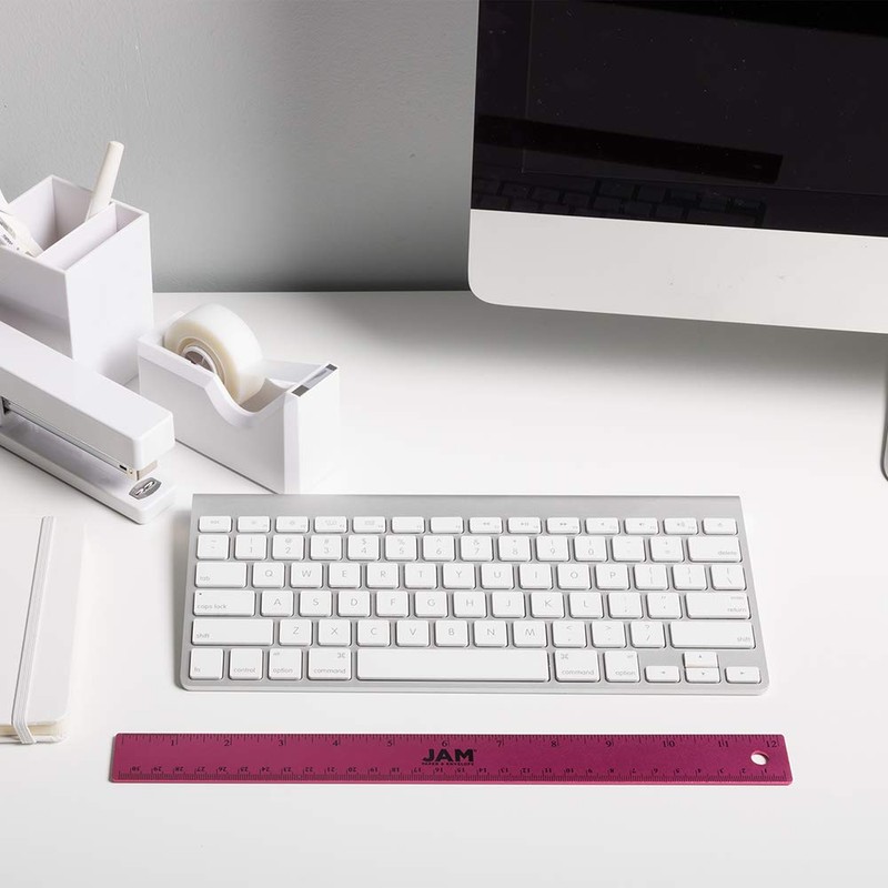 JAM PAPER Strong Aluminum Ruler - 12 Inch - Metal Ruler with Non-Skid Cork Backing - Fuchsia Metallic - Sold Individually