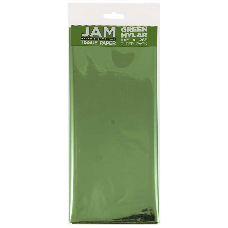 JAM PAPER Tissue Paper - Green Mylar - 3 Sheets/Pack