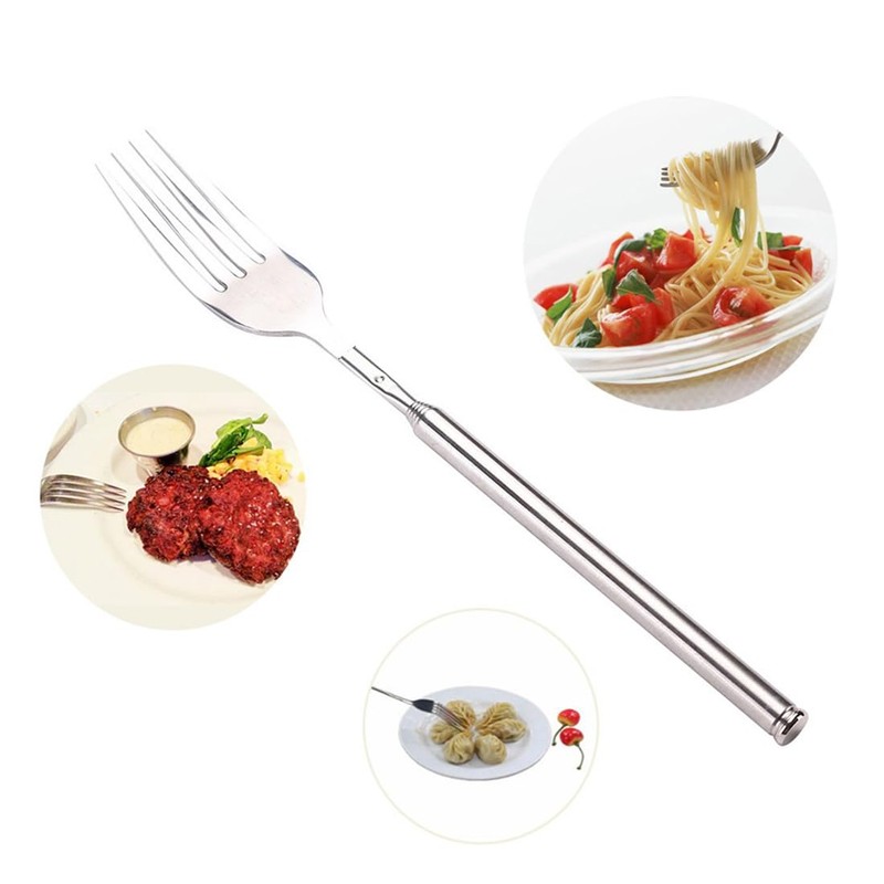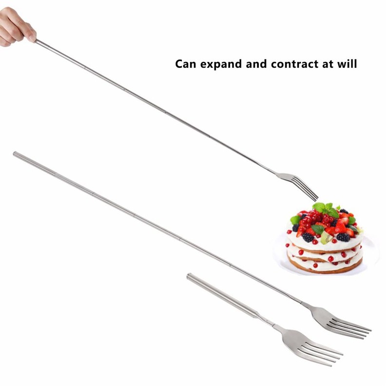 - 【Extendable Fork】This adjustable extendable fork can easily let you eat food anywhere on the table, party, barbecue party, without having to walk around, or you have to stand up to catch food.