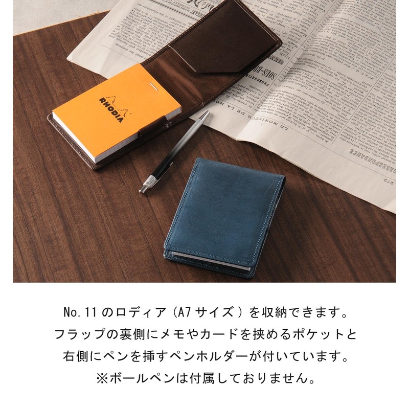 - Specifications: This is a notepad cover for the N.11 Rodia (A7 size) only. The back of the flap has a pocket for storing cards, and a pen holder on the right. Includes a notepad cover and 1 RHODIA No.11 notepad. The ballpoint pen etc. are for illustrative purposes only. No accessories