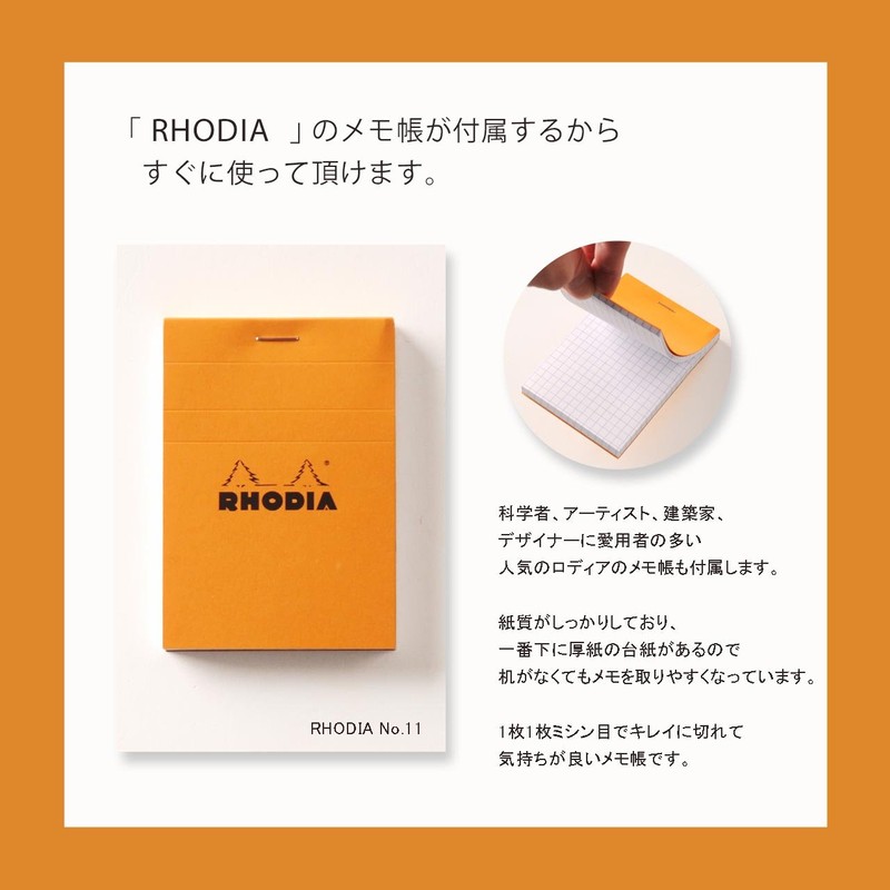 This is a notepad that looks and is easy to use, and comes with a Rhodia No.11 notepad so you can use it immediately.