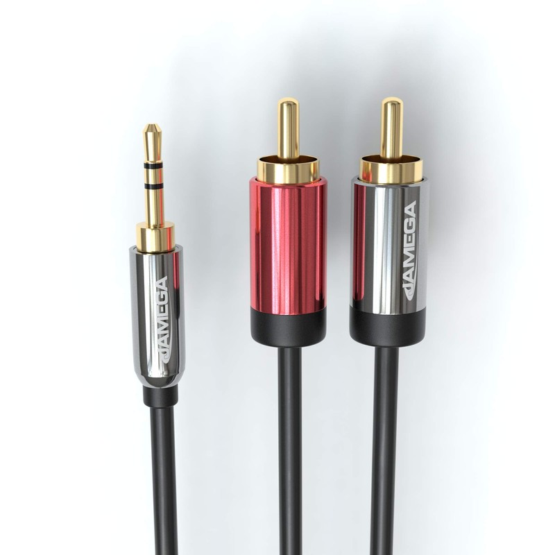 JAMEGA - 1 m RCA to Jack Cable | 3.5 mm Jack Plug to 2 RCA Male Audio Cable Double Shielding Hifi Aux RCA for Smartphone, Tablets, Stereo, Amplifier, Speakers etc