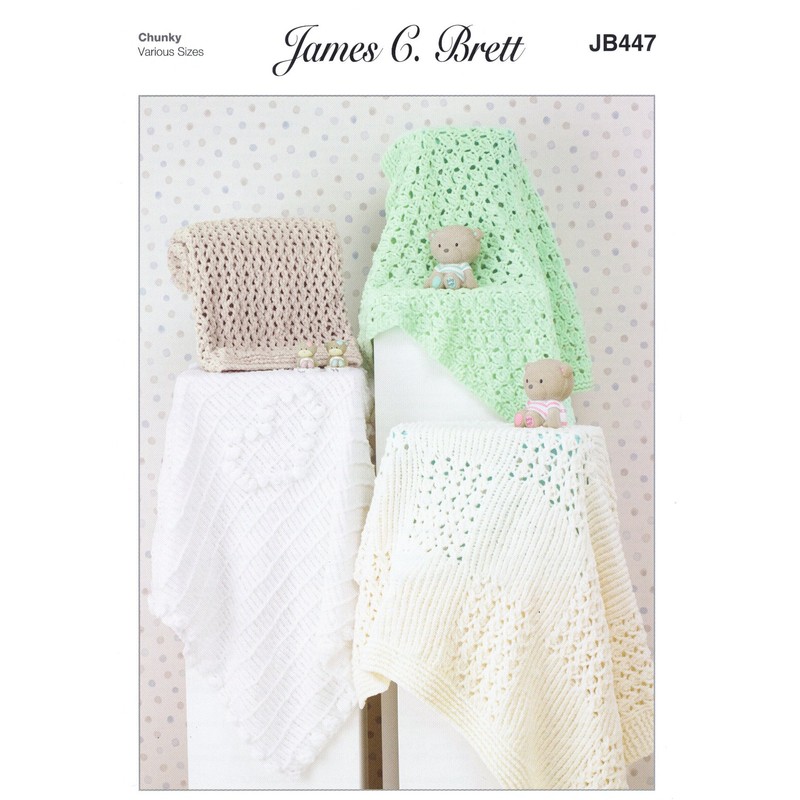 James Brett Chunky Knitting Pattern Baby Lacy Pattern Pram & Cot Comforter Blankets (JB447)