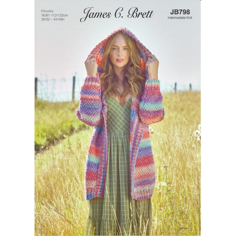 James Brett Womens Chunky Intermediate Knitting Pattern Hooded Cardigan (JB798)