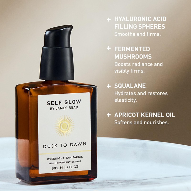 James Read - Dusk to Dawn Overnight Tan Facial Serum Travel Size | Hydrate, Smooth, + Plump | Aloe Vera, Vitamin E + Plant-Based DHA | Stain-, Silicone- + Drying Alcohol-Free (15mL | 0.5 fl oz)