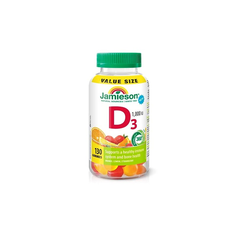Jamieson Vitamin D3 1,000 IU Gummies - Orange, Strawberry, Lemon Flavour, 130 Gummies