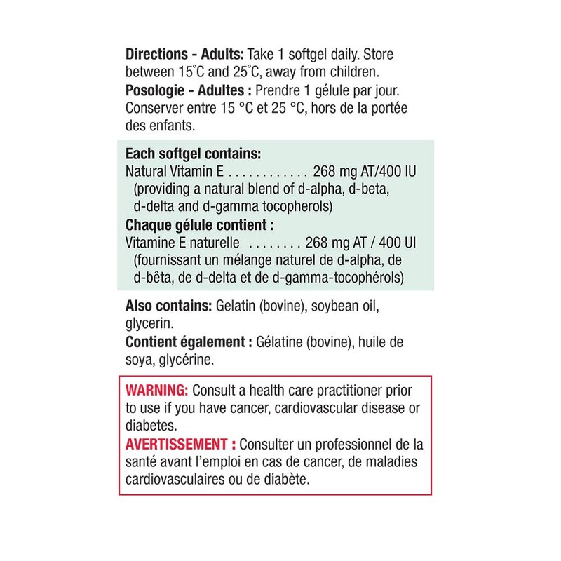 Balanced Vitamin E 400 IU with Mixed Tocopherols is a natural source of antioxidant support and a factor in the maintenance of good health. It helps to support cardiovascular health, prevents the premature aging of cells and protects against age-related cognitive decline.