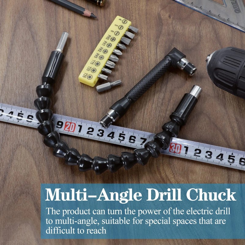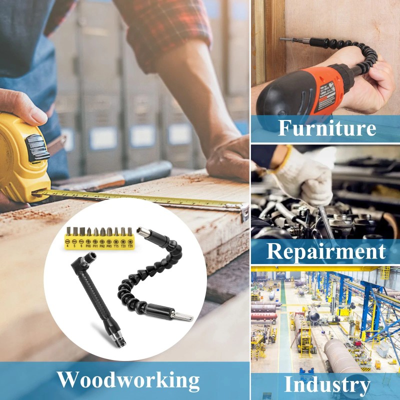 *Package Inclusions: Our drill bit extension kit includes 1 x flexible extension Bit, 1 x 90° Right Angle Screwdriver Bits , and 10 x screwdriver bits, providing an all-in-one solution for limited access spaces.