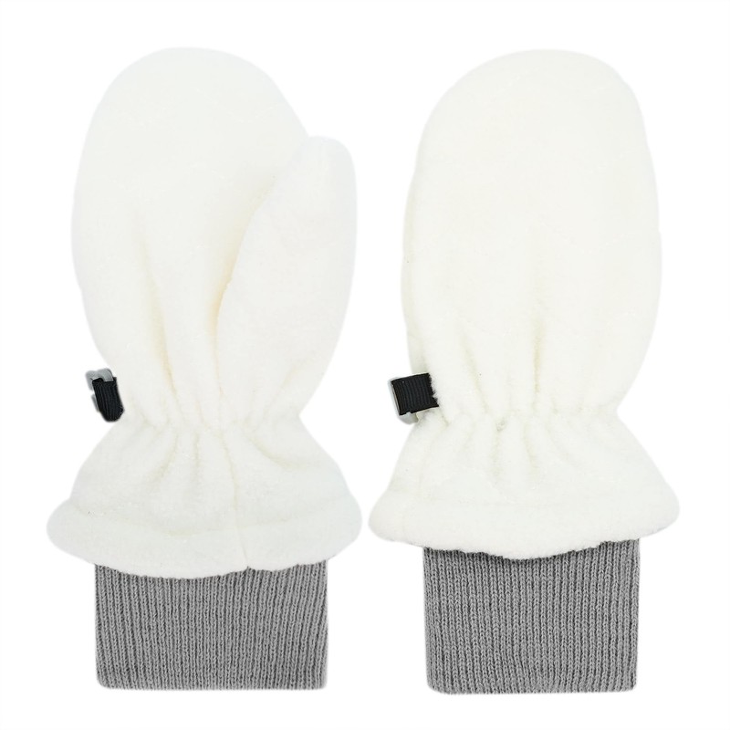 JAN & JUL Stay-On Winter Fleece Mittens with Ribbed Cuffs for Toddlers and Kids (Cream, Size L)