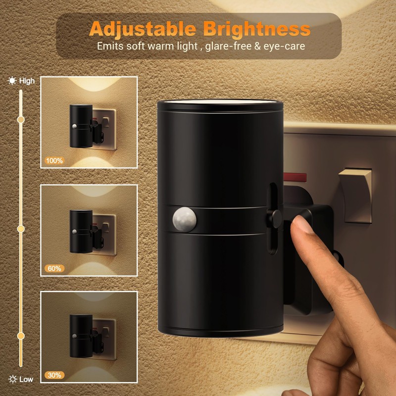 - Dimmable Nightlight: Plug in night light for hallway features a smooth dimming technology that allows from 0 to 100LM by touching the sliding switch button, night light plug in wall can suit different environments and usage needs