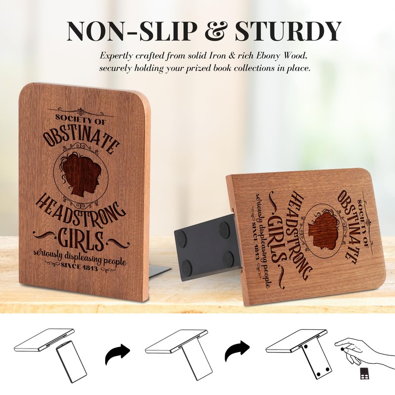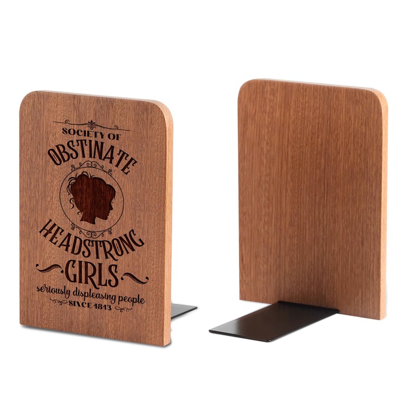 Jane Austen Gifts for Women Men, Novelty Bookends Unique, Pride and Prejudice Gifts for Book Lovers, Heavy Duty Wooden Book Ends for Shelves Decorative(1 Pair, 4.72x6.69 Inches)