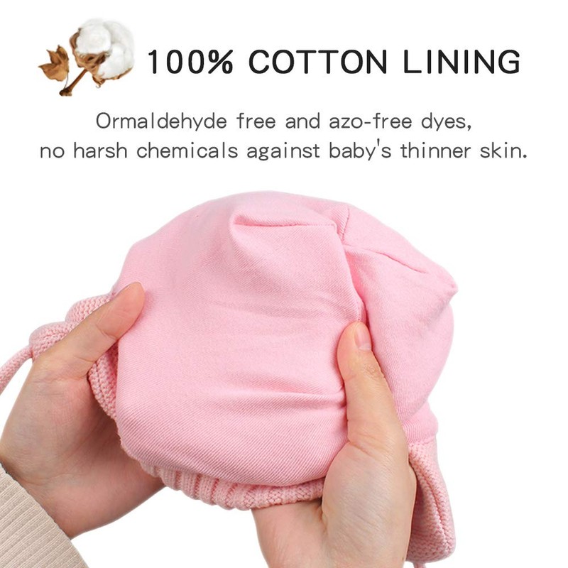- MATERIAL - 50% COTTON and 50% ACRYLIC FIBERS.Lined with soft cotton, use Eco-friendly healthy material, no peculiar smell, make baby hats soft, warm and comfortable.