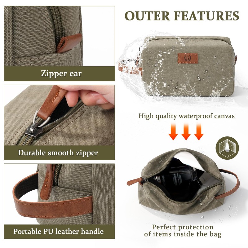 - đăEco-friendly Material & No unpleasant odorăEach accessory is made of eco-friendly materials and has no unpleasant odor.The durable zippers of the cosmetic bag can protect travel toiletries essentials against fall out and store well organized mens shaving kit, grooming kit, travel accessories,cosmetic, makeup kit, gym shower kit etc. Handmade stitching allows travel toiletry bag to last a lifetime while waterproof lining protects your belongings from spill out