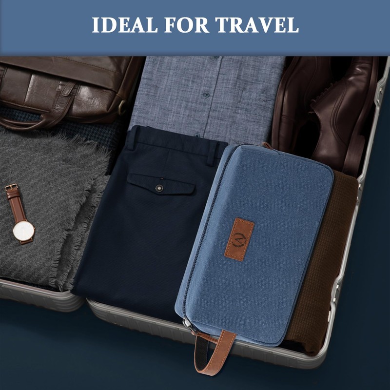Waterproof & Large Capacity:The personalized travel size toiletries bag is handmade of canvas that offers comfortable texture with super water-resistance. Multiple areas of makeup organizer will be perfecrt for storing more items. SIZE: 9â (Length) x5.1â (Height) x 4.7â (Width). Weight: 0.35 LB. Large capacity toiletry box for traveling can hold all your grooming, shaving and toiletry necessities, yet compact enough to easily pack in your travel bag.