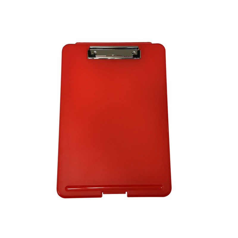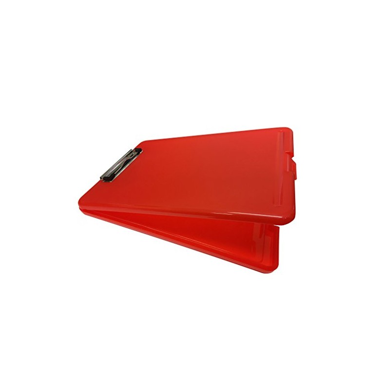 - Heavy duty low profile spring-loaded metal clip top of clipboard with plastic coated corners to prevent damage to documents. The box file has hinges at the top and folds flat. Secure snap closure at bottom edge.
