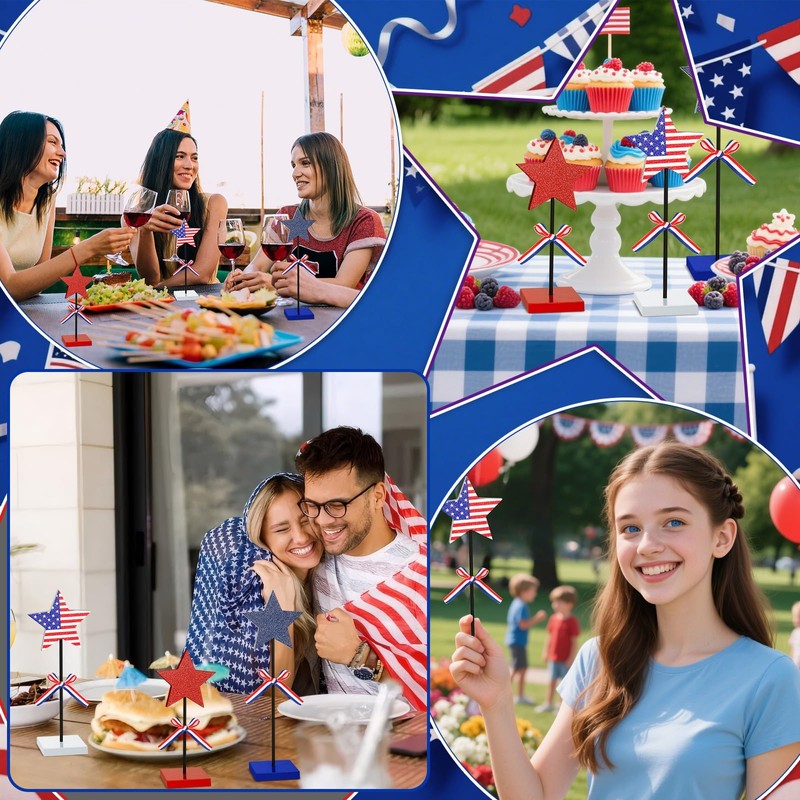 - Reliable Material: These shiny patriotic tiered tray decor are made of good-quality wooden materials, which have good durability. The whole 4th of July tiered tray decor is printed and colored, and the color is bright and not easy to fade.In addition, there is a layer of glitter on the surface of the star, and wood patriotic table decor is decorated with a bow, look vivid and bright. Wood star set is very suitable for celebrating Independence Day and other holiday parties