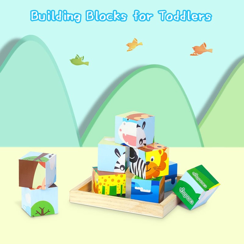 - 🦒Six-in-One Animal Wooden Jigsaw Puzzle: This beautifully crafted puzzle is designed to be easy to play with, making it ideal for children aged 6 and under. This puzzle includes 9 colored cube blocks and 6 favorite animals, and comes with a durable wooden tray for convenient storage.