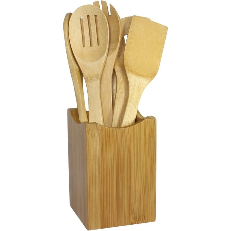 Keep your utensils tidy with this bamboo utensil holder. Made with 100% bamboo, the holder is a great alternative to storing your utensils.
