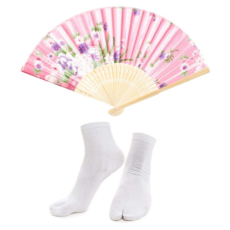 - Package includes: Long kimono robe*1 , Belt*1, Bowknot*1,Hand held flower printing silk folding fans*1 ,Tabi socks*1 ,5-piece set