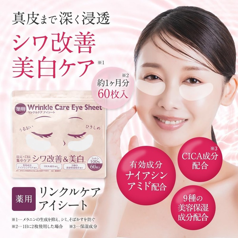 [Japanese Eye cream] Medicated Wrinkle Care Eye Sheet for Eyes and Mouth Areas, Pack of 60