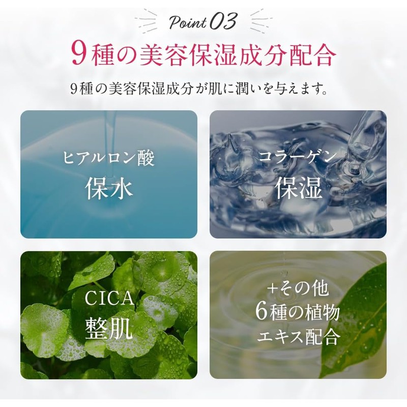 Product Benefits: Reduces wrinkles, whitening care (suppresses melanin generation, prevents stains and freckles), soothe skin, and moisturizes the skinReduces wrinkles, whitening care (suppresses melanin generation, prevents stains and freckles), soothe skin, and moisturizes the skin