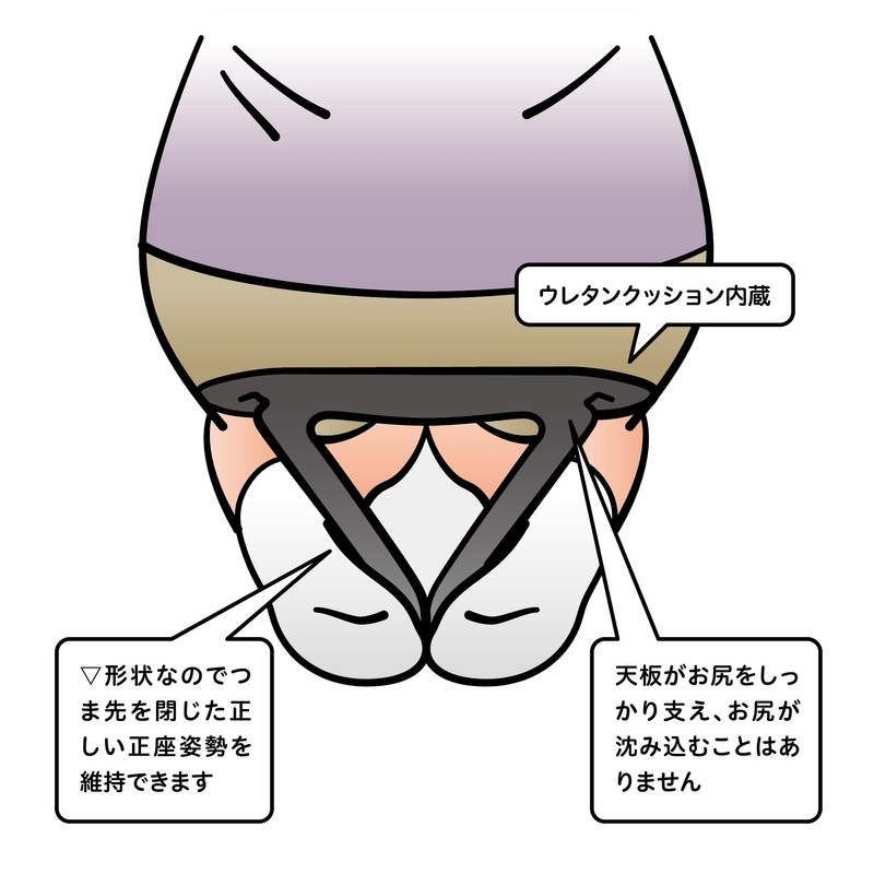 - The top board is made with an inverted triangle that is foldable, yet has been realized (Registered Design). No more sinking in your butt and the edge of the plate hits your butt