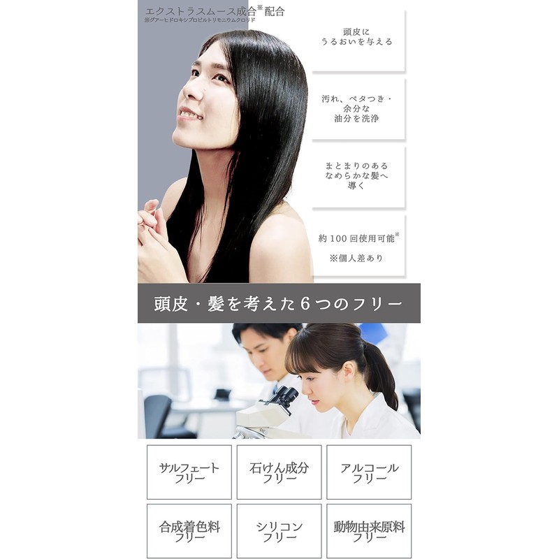 [Shampoo] Contains conditioning ingredients to reduce staining. By removing water from the liquid, the functional ingredients remain concentrated, lathering well, and providing a smooth washing experience.