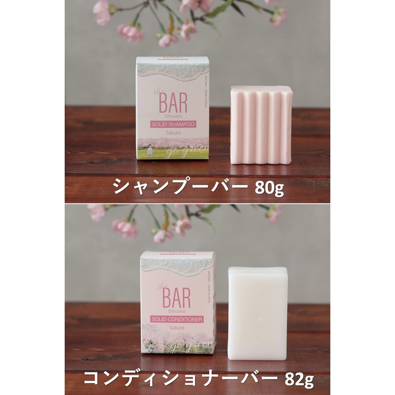 [Japanese Hair Shampoo] TheBAR Solid Shampoo Solid Conditioner Set Sakura Hypoallergenic Foaming Functional Ingredients Moisturizing High Concentration Organic Shampoo Bar Made