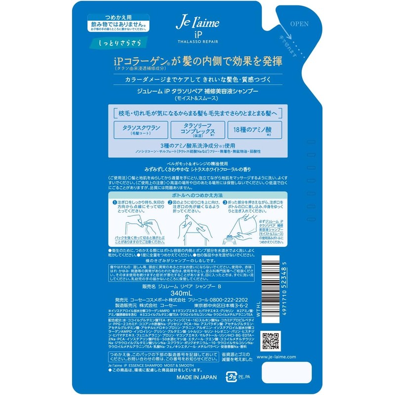 [Japanese KOSE Shampoo] KOSE Jureme IP Thalasso Repair Serum Shampoo (Moist Smooth) Refill 340ml