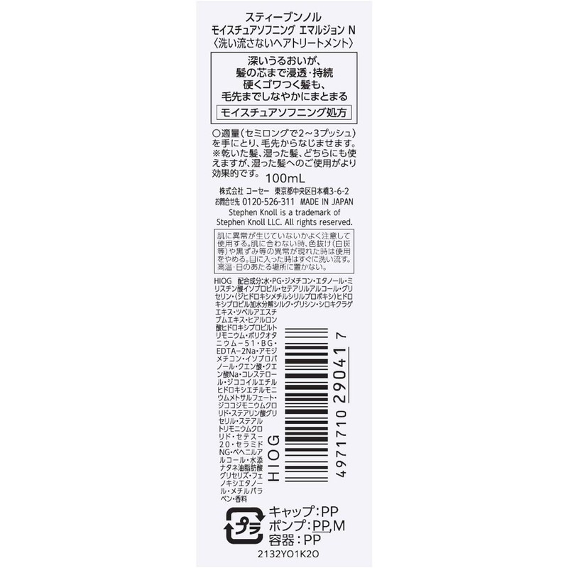 [Japanese Moisture Cream] STEPHEN KNOLL Moisture Softening Emulsion N Non-Rinse Treatment 100mL High Penetration Emulsion Amino Acid Aluronic Acid Damage Repair Moisture Salon