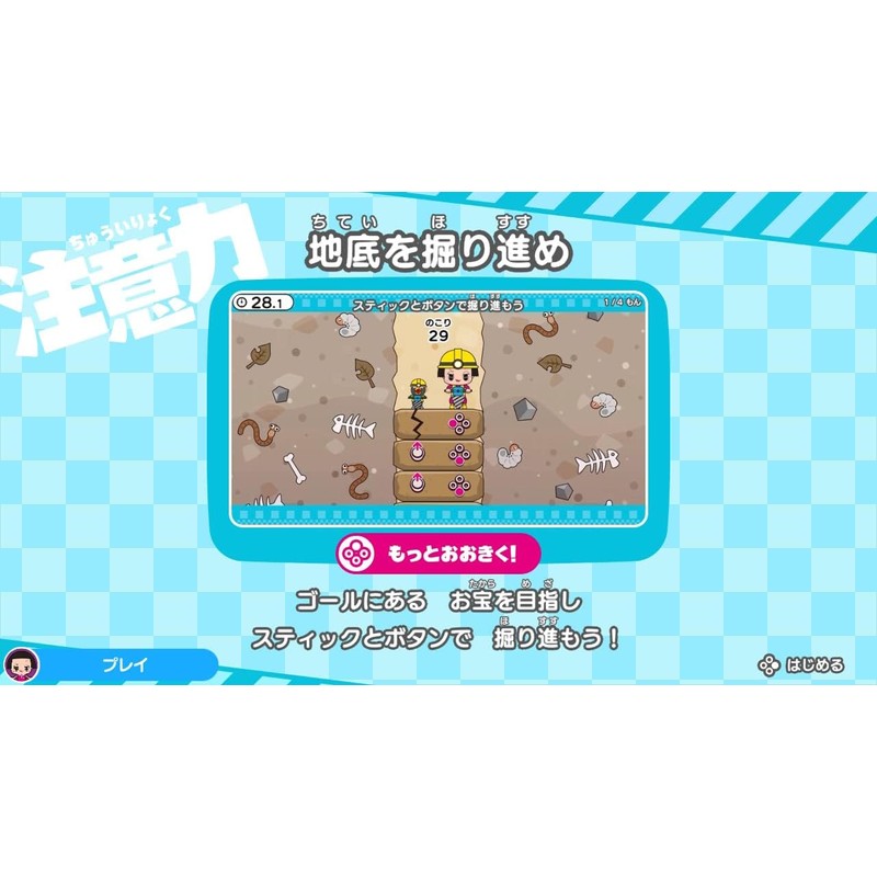 Neuroscientist and professor Kikunori Shinohara of Suwa Tokyo University of Science supervises all the brain-activity games that are included. By playing brain-activating games prepared for each of the three genres of ``attention,'' ``analytical ability,'' and ``inspiration,'' you can stimulate various parts of your brain and improve your brain-activity just by enjoying the game.