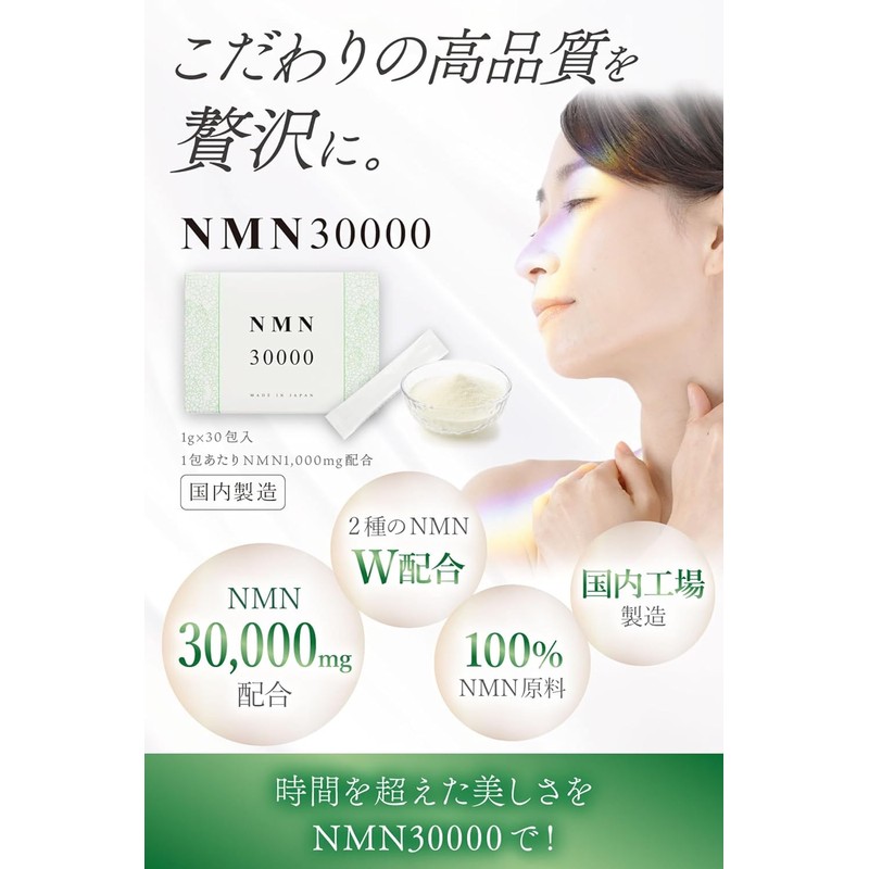 [Japanese NMN] Large capacity NMN 30,000mg 1g x 30 packets Contains 1,000mg per packet NMN double combination Naturally derived NMN Domestic GMP certified factory 1 month supply