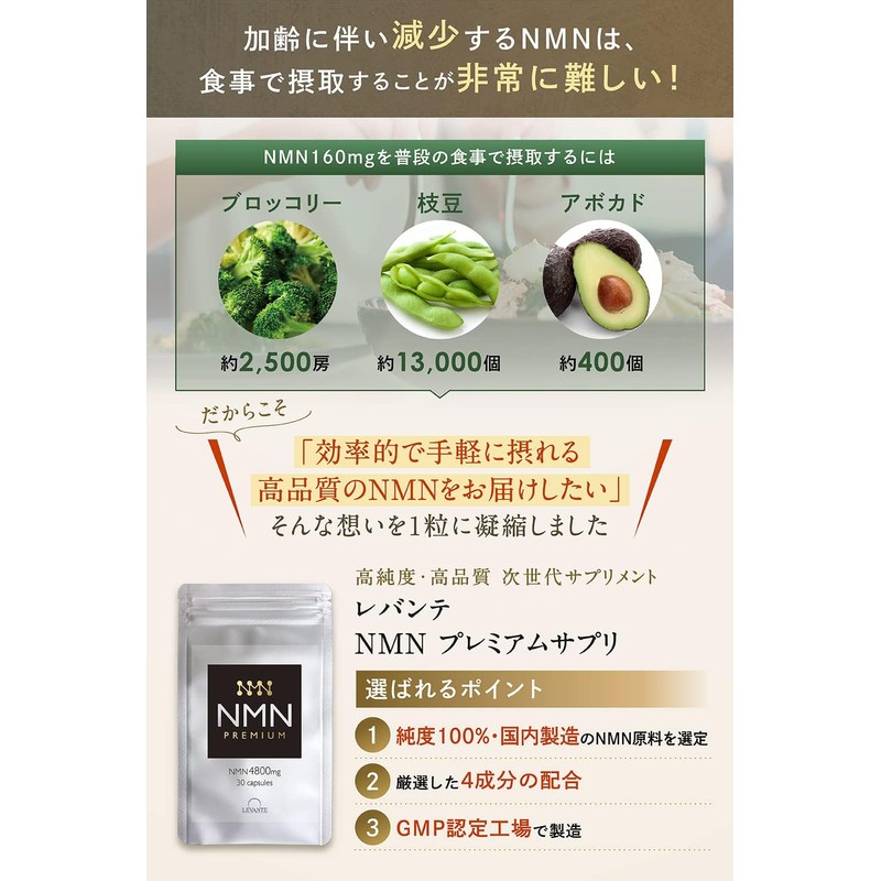 [Japanese NMN] Levante NMN Supplement 4800 mg analyzed (100% formulation/purity) capsule yeast fermentation Resveratrol Reduction Coenzyme Q10 GMP Certified Factory Made in Japan