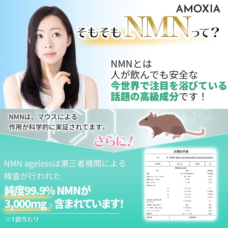 [Japanese nutritional supplements] AMOXIA NMNageless High Purity Contains 99.9% NMN 3,000mg supplement Made in Japan Acid Resistance Nicotinamide Mononucleotide Sartuin Pure