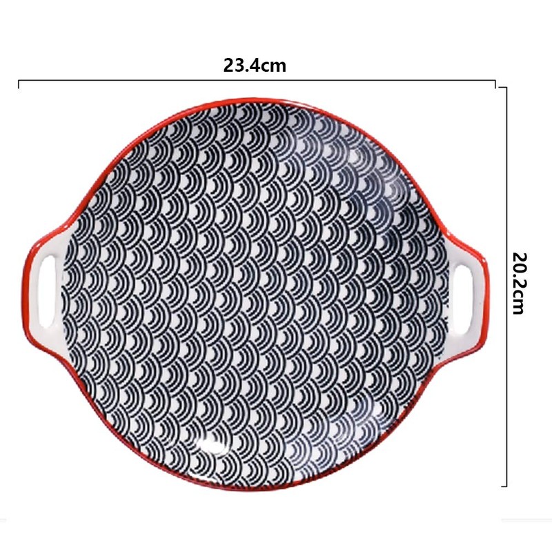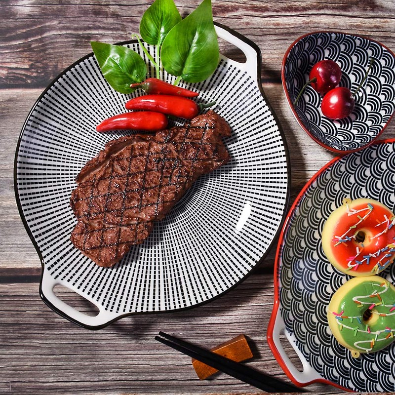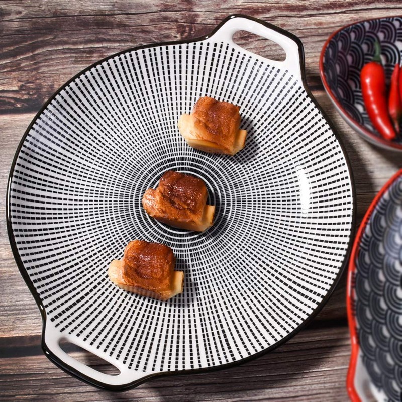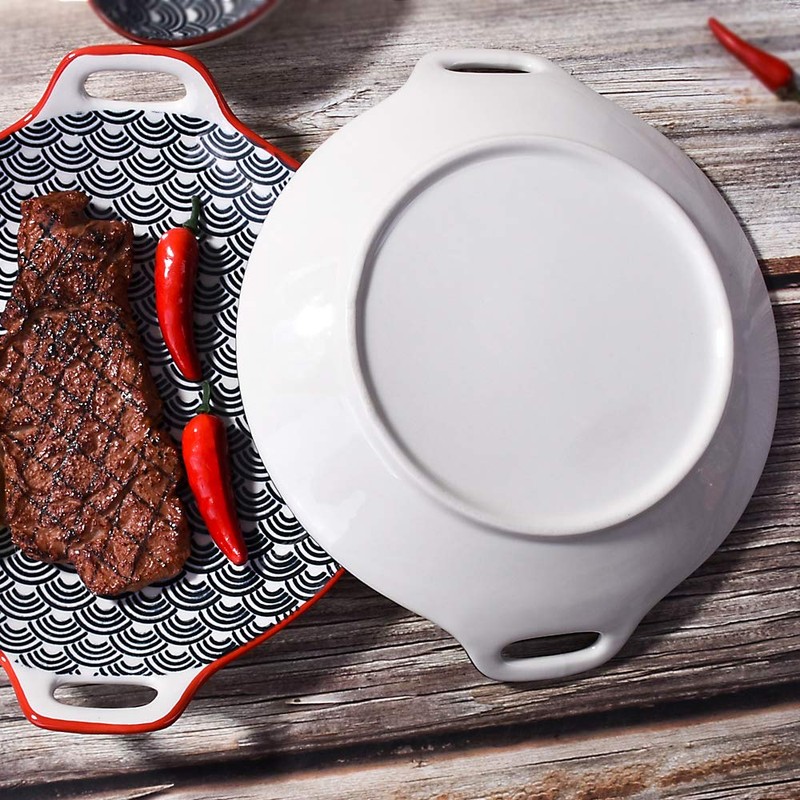 Japanese Porcelain Dinner Plates, Large Serving Plate Set, Assorted Blue White Patterns, Set of 2, Two-ears Ceramic Dinner Plates set