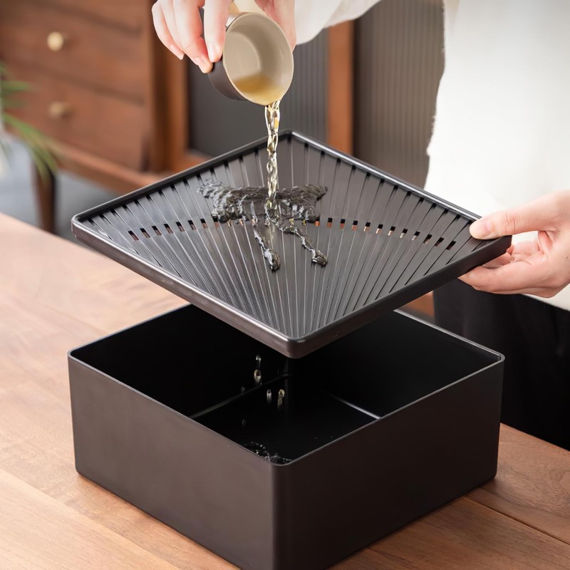 Intelligent Drainage Tea Tray: Built-in wastewater bin, convenient for daily water storage; with the suction ball and drain, it can be quickly drained to keep the desktop tidy.