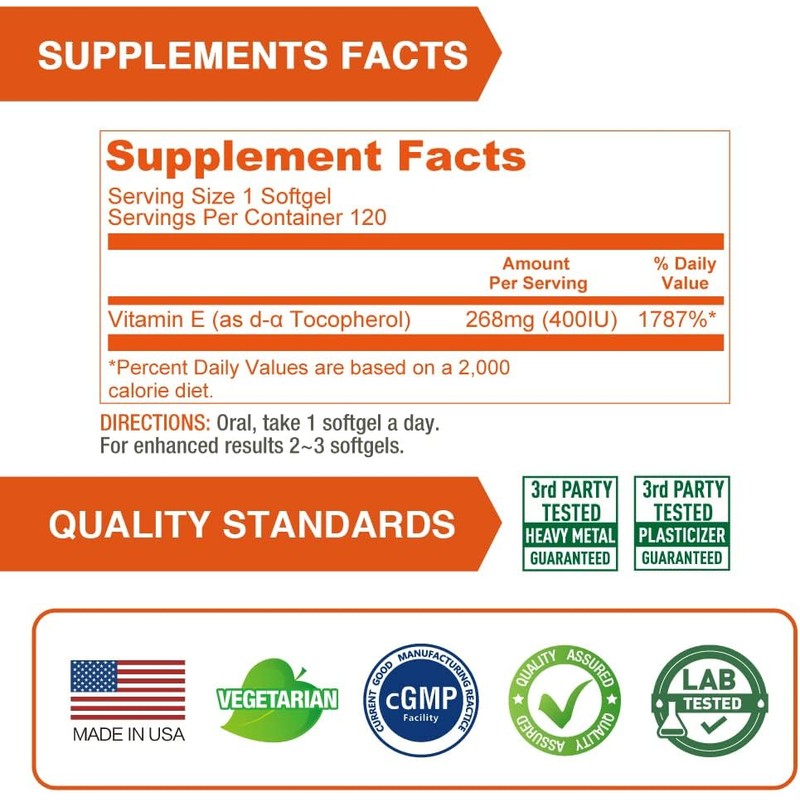 [Japanese Vitamin Supplements] Lovita Vitamin E, Natural Vitamin E 400IU, D-Alpha Tocopherol, High Content and High Formulation Natural Vitamin E, 120 Soft Gels, Value 120 Days